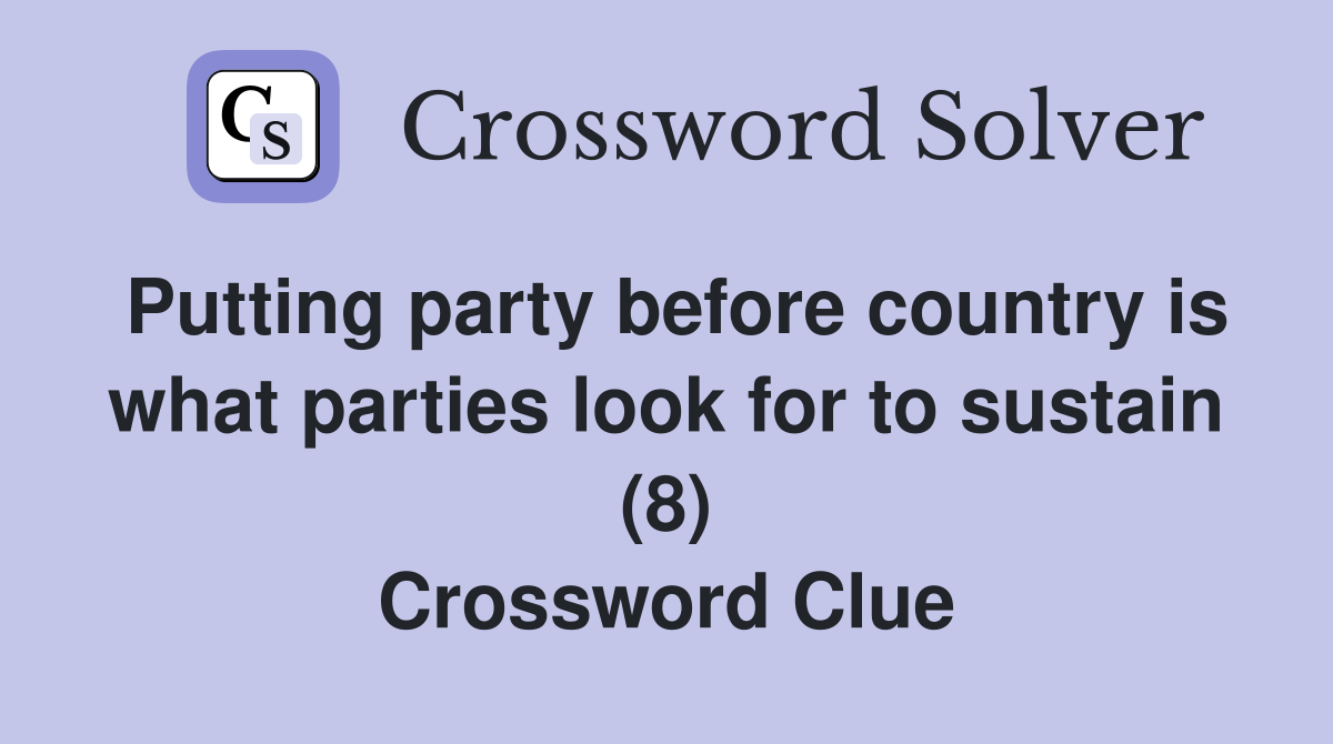 Today's crossword puzzle clue is a quick one: There are two answers total, sum is the most recent and it has 3 letters. The crossword dictionary explains the answers for the crossword clue 'payment for putting parties together?'. We found 40 solutions for the fuss with which a party is put together (3). If more than one crossword.