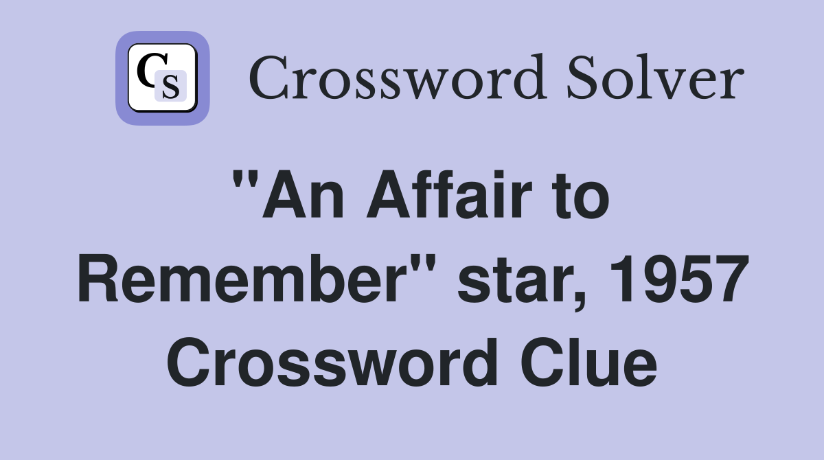 "An Affair to Remember" star, 1957 Crossword Clue Answers Crossword