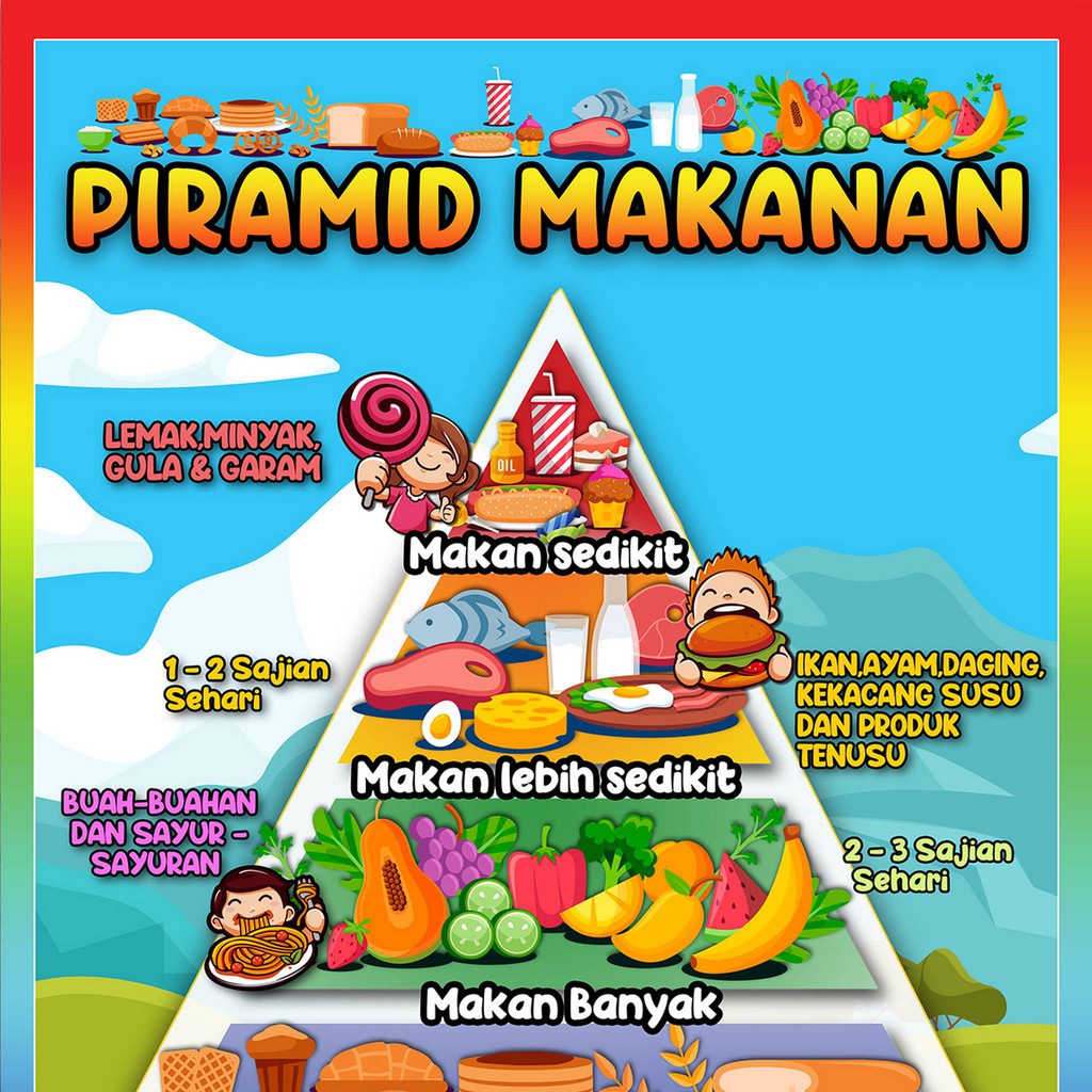 Panduan pengambilan makanan harian untuk populasi berumur 7 tahun ke atas berdasarkan piramid makanan malaysia 2020. A guide to your daily food intake based on the malaysian food pyramid 2020. Bagi populasi 7 tahun ke bawah, rujuk saranan pengambilan makanan. Panduan pemakanan sihat yang berasaskan bukti saintifik dan status pemakanan rakyat malaysia. Piramid ini adalah untuk populasi berumur 7 tahun.