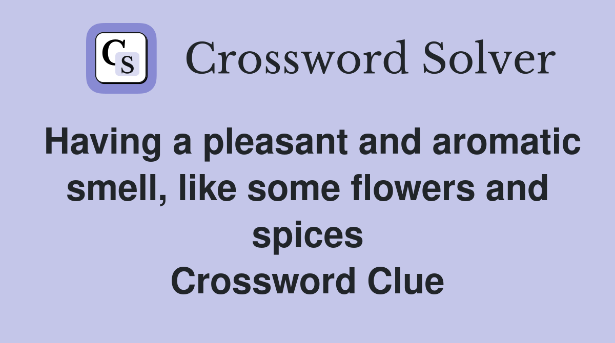 Here is the answer for the crossword clue pleasant scent featured in newsday puzzle on september 11, 2024. The crossword solver finds answers to classic. Here is the answer for the crossword clue pleasant scent last seen in universal puzzle. There are related clues (shown below). The crossword solver found 30 answers to pleasant scents, 8 letters crossword clue.