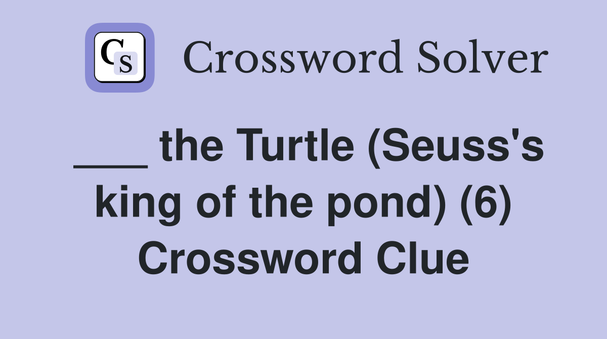 the Turtle (Seuss's king of the pond) (6) Crossword Clue Answers