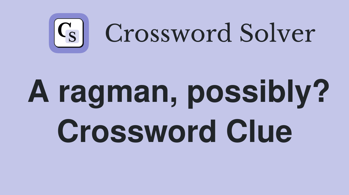 A ragman, possibly? Crossword Clue Answers Crossword Solver
