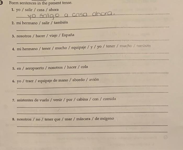 Solved Form sentences in the present tense. 1. yo / salir /