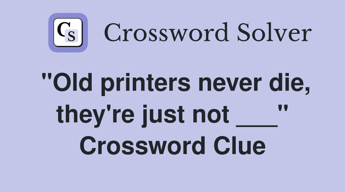 "Old printers never die, they're just not ___" Crossword Clue Answers