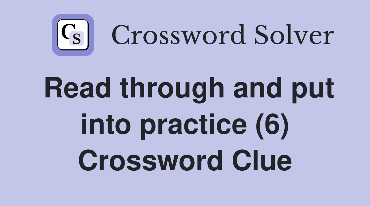 We have found 40 possible answers for this clue in our. See 7 possible solutions and email us. Learn the meanings and examples of each word and how to. New suggestion for put into action. The crossword solver finds answers to classic crosswords and.