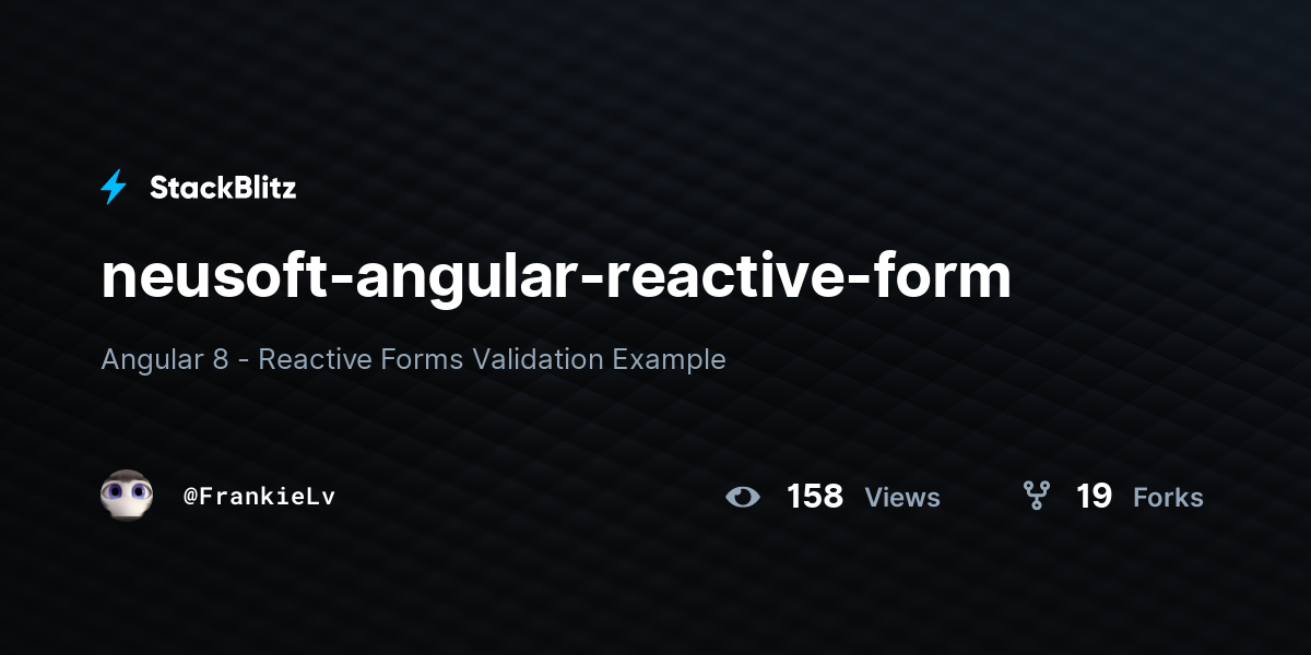 Reactive Form Validation In Angular Stackblitz - You can pass a validator to the relevant form controls in the formbuilder#group method as documented in the first link i. Angular 13 form validation example with reactive forms. Application example built with angular 13 and creating and validating a reactive form. Angular 17 reactive forms form validation example. Application example built with angular 14 and creating and validating a reactive form.