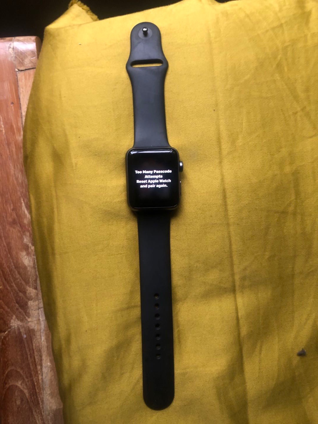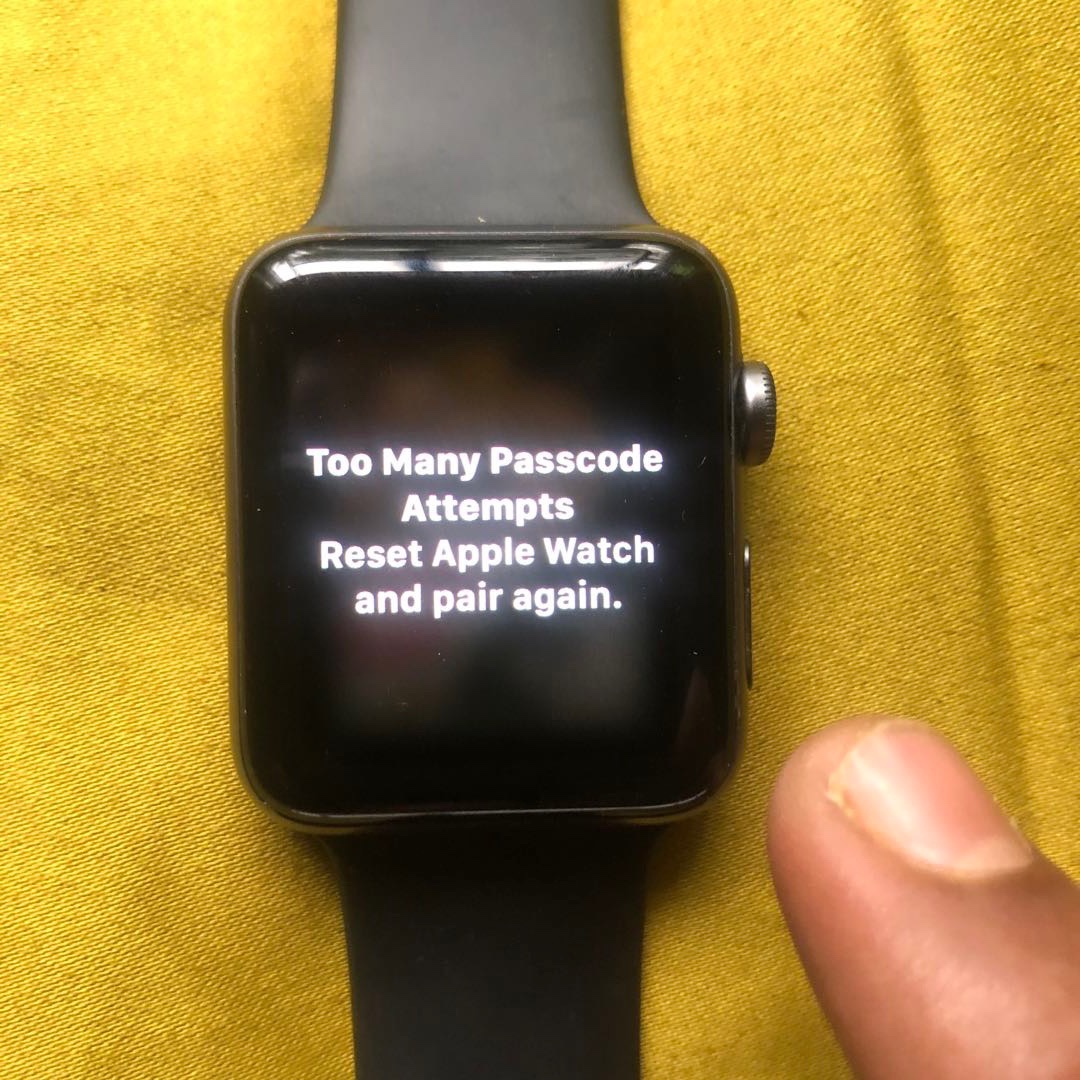 “too many passcode attempts reset apple watch and pair again” hello, son was playing with my apple watch and now i am getting the message “to many passcode attempts reset apple watch and pair again”. I tried the “hold the side button until you see power off, then press and hold the digital crown until you see reset. Press and.