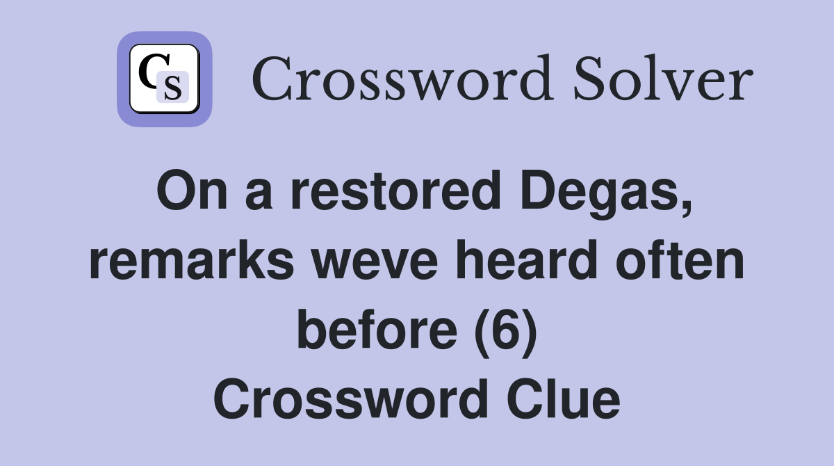 On a restored Degas, remarks weve heard often before (6) Crossword