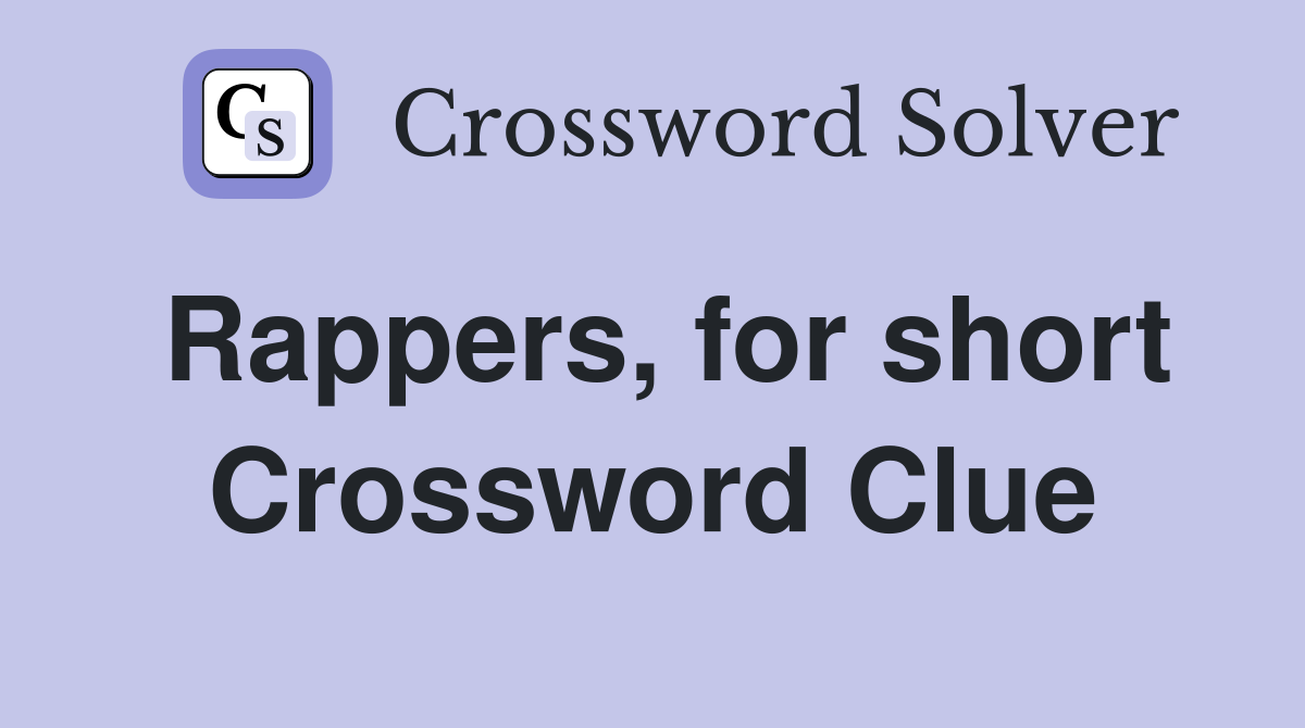 Rappers, for short Crossword Clue Answers Crossword Solver