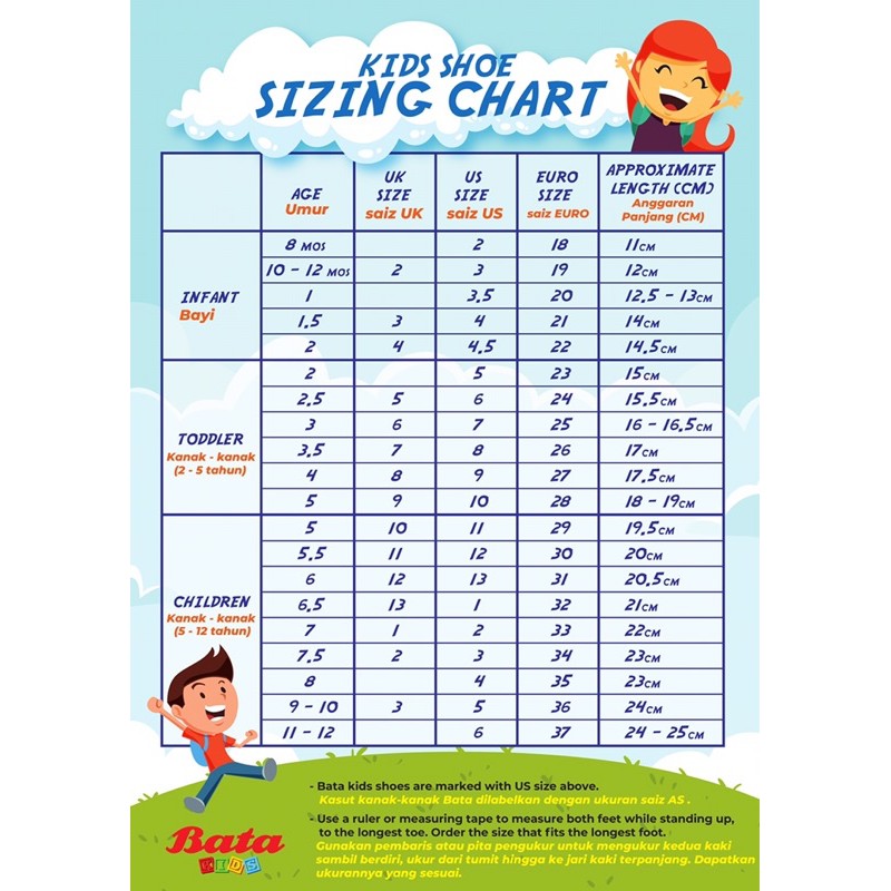 Saiz Kasut Kanak Kanak Malaysia
