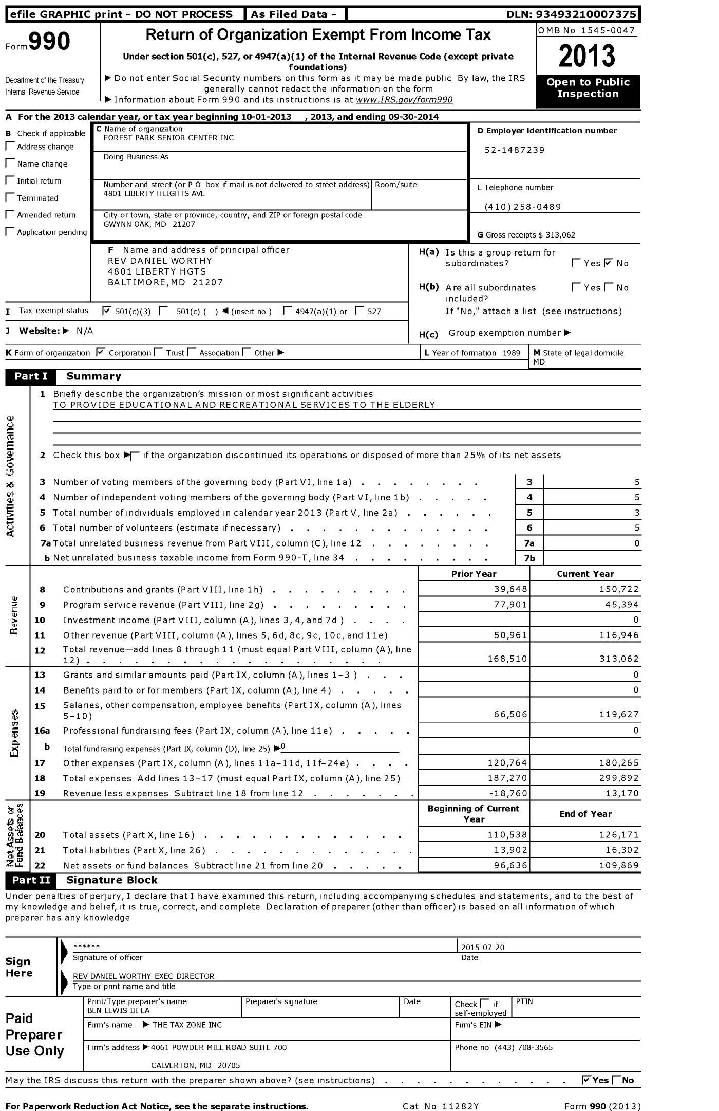 2014 Form 990 for Forest Park Senior Center Cause IQ