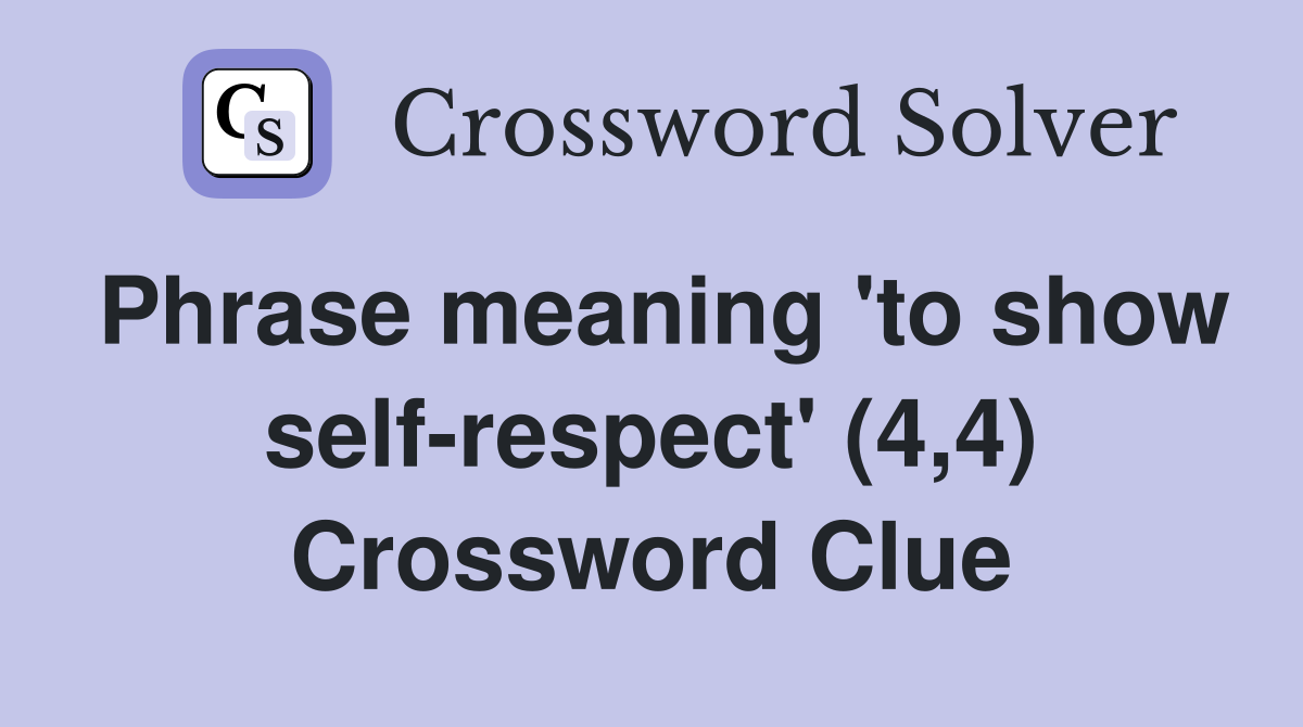 Phrase meaning 'to show selfrespect' (4,4) Crossword Clue Answers