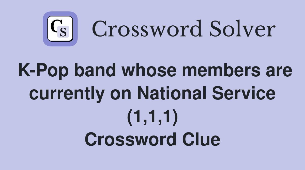 This crossword clue was last seen on august. The answer to this clue is bts. The crossword solver found 30 answers to 7 member k pop band, 3 letters crossword clue. Here is the answer for the: The crossword solver finds answers to classic.