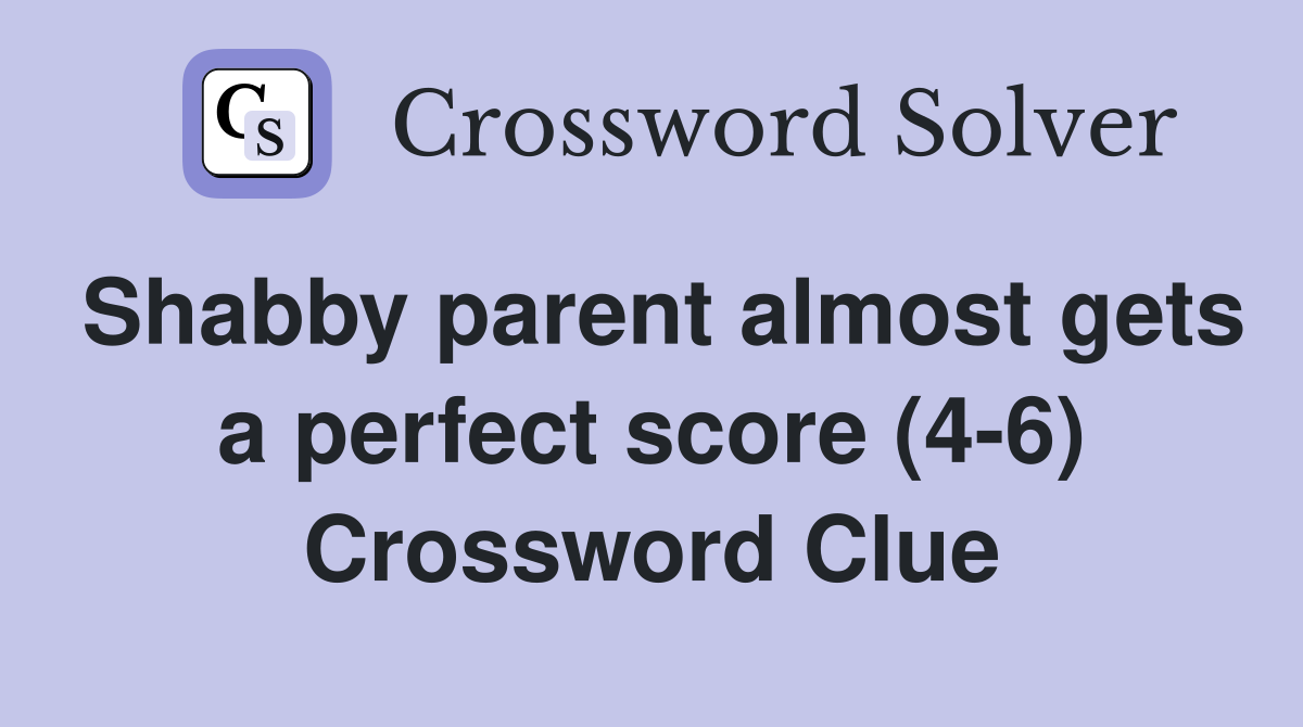 Shabby parent almost gets a perfect score (46) Crossword Clue