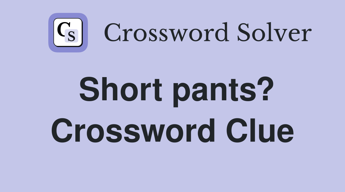 Crossword clue answers and solutions. The answer to short pants? Here is the answer for the crossword clue short pants? Ny times, daily celebrity, telegraph, la times and more. We have found 40 possible answers for this clue in our database.