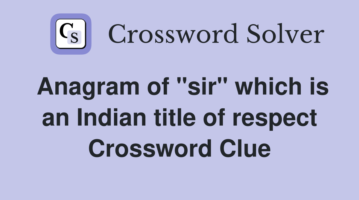 Anagram of "sir" which is an Indian title of respect Crossword Clue