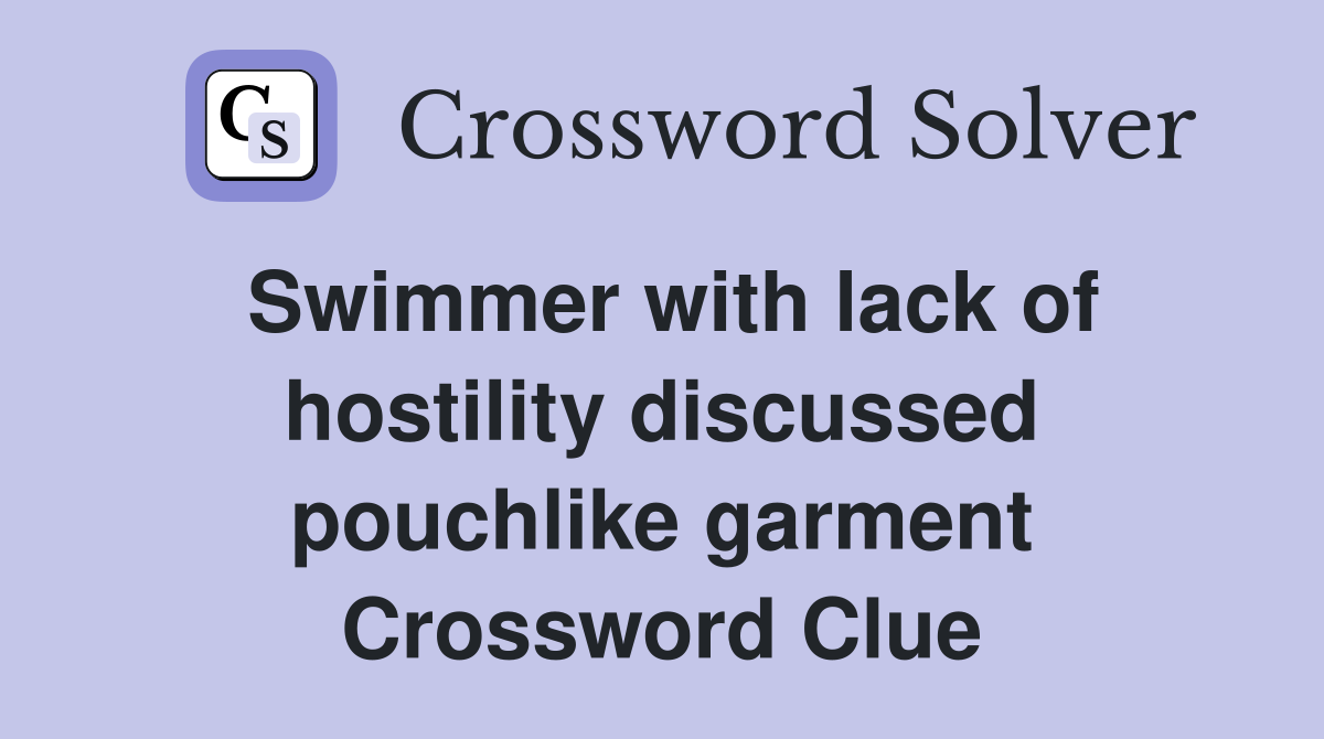 Swimmer with lack of hostility discussed pouchlike garment Crossword
