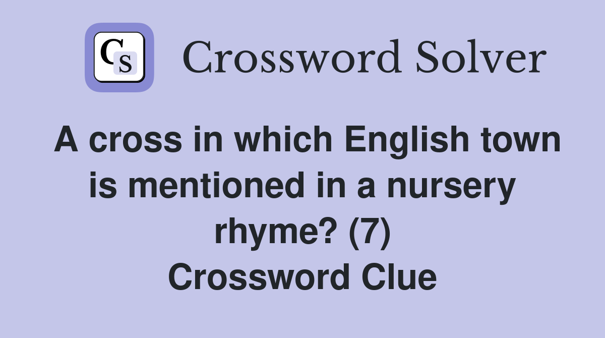 A cross in which English town is mentioned in a nursery rhyme? (7
