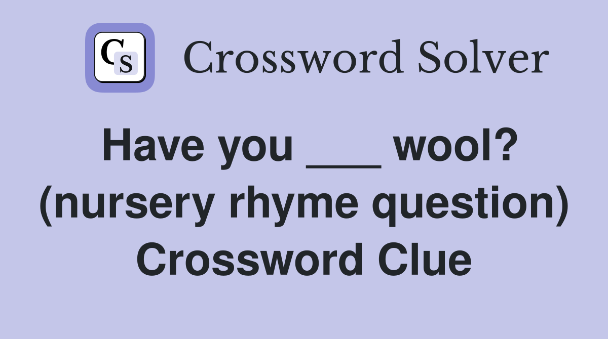 Have you ___ wool? (nursery rhyme question) Crossword Clue Answers
