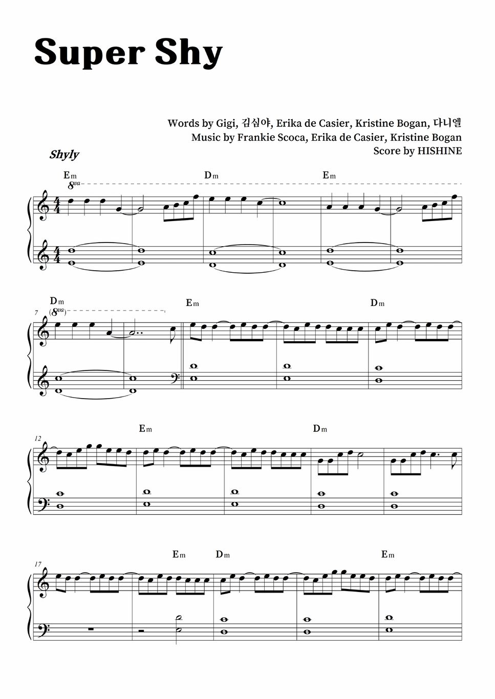 You can download & print 88sheet music, of super shy and many others. Support for instruments such as piano, violin, flute. Learn to play super shy by new jeans with melodic notes for flute, clarinet, violin, saxophone, recorder or any other instrument. Share, download and print free sheet music of super shy (가사) newjeans for piano, guitar, flute and more.
