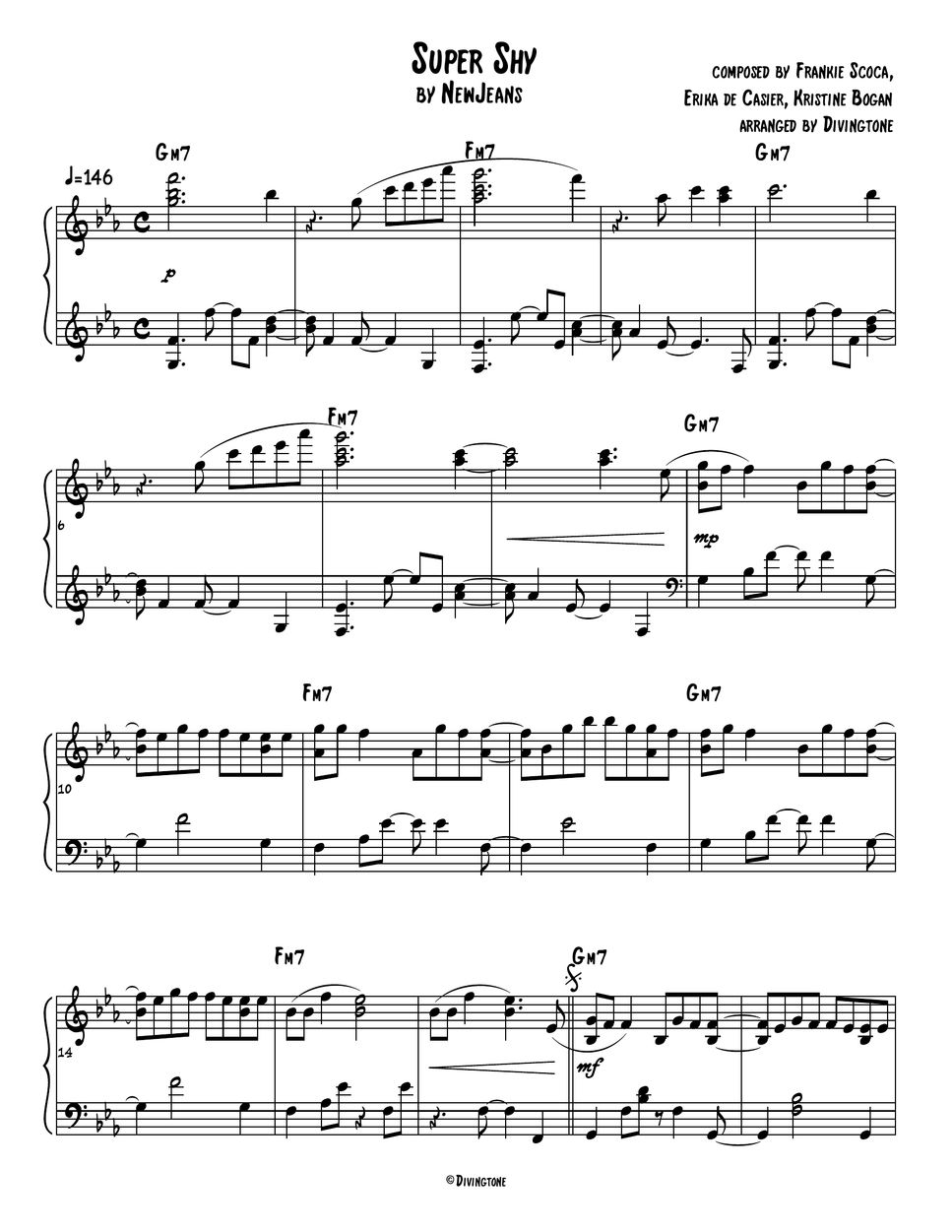 NewJeans (뉴진스) Super Shy (piano sheet / 피아노 악보) نوتة by Divingtone