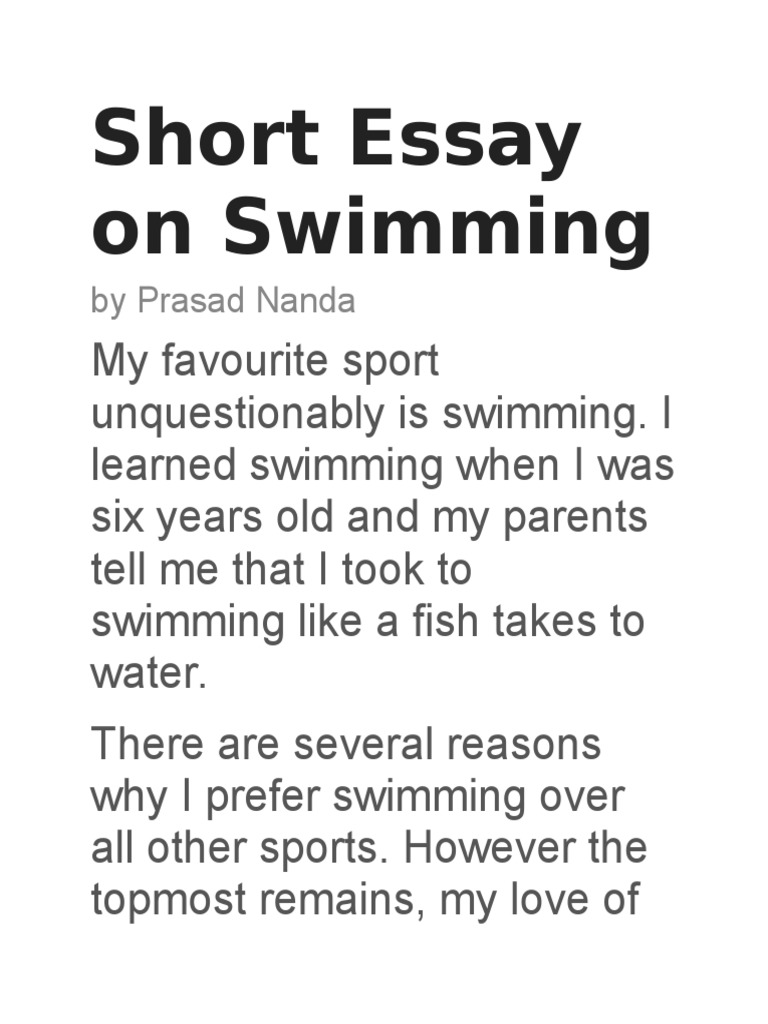 Short Essay on Swimming.doc Swimming (Sport) Racing