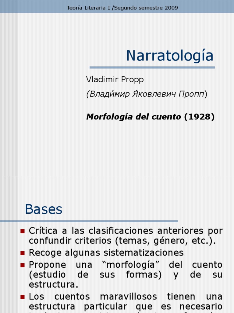 Teoría Narratología Propp - Un análisis de la estructura narrativa de los cuentos maravillosos rusos según la teoría de vladímir propp. Using what is now considered a structuralist approach, propp mapped out the “constant elements” of 100 narratives.