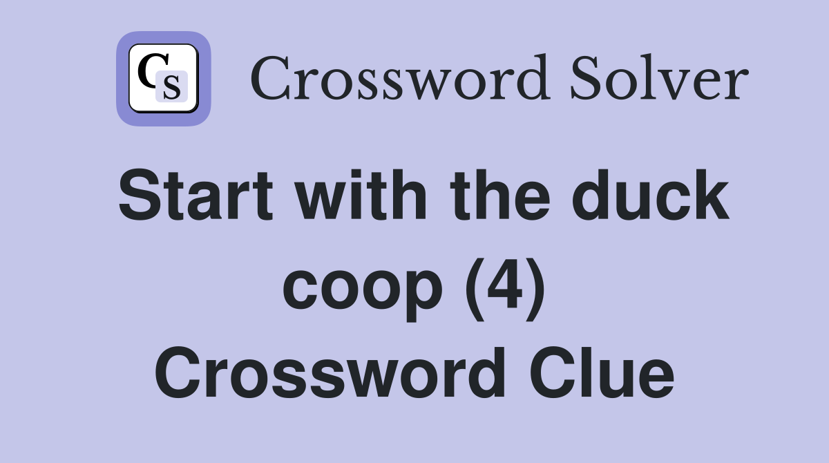 Start with the duck coop (4) Crossword Clue Answers Crossword Solver