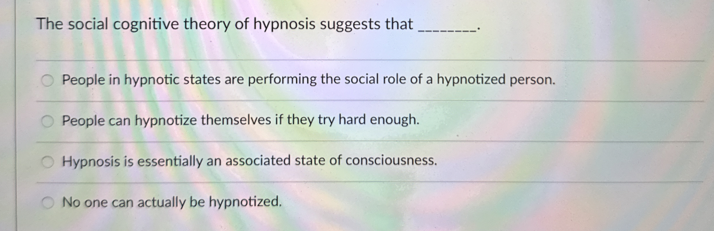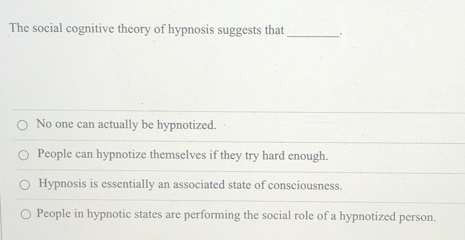 Solved The social cognitive theory of hypnosis suggests