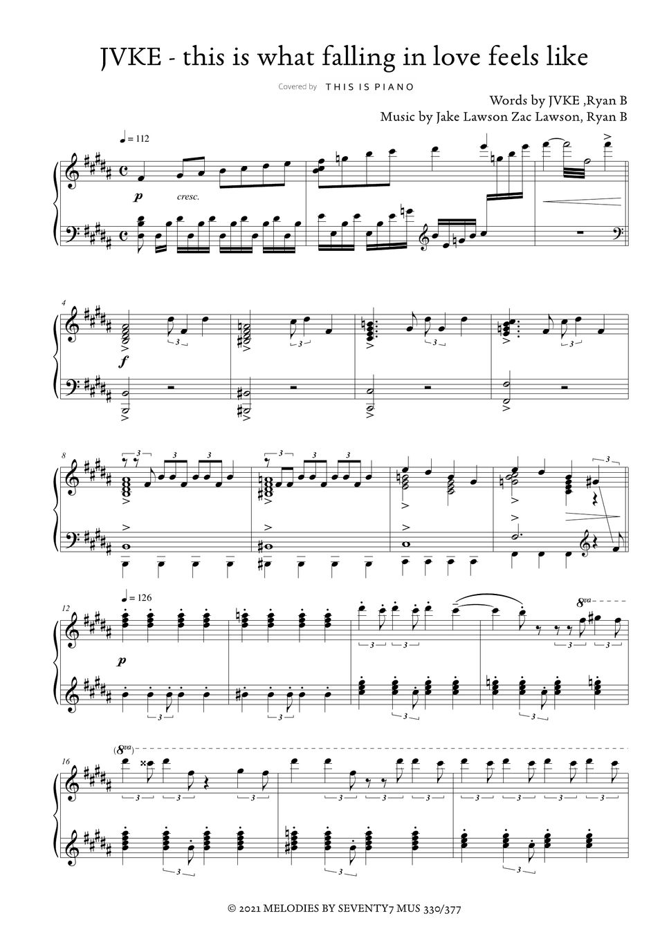 JVKE this is what falling in love feels like 樂譜 by THIS IS PIANO