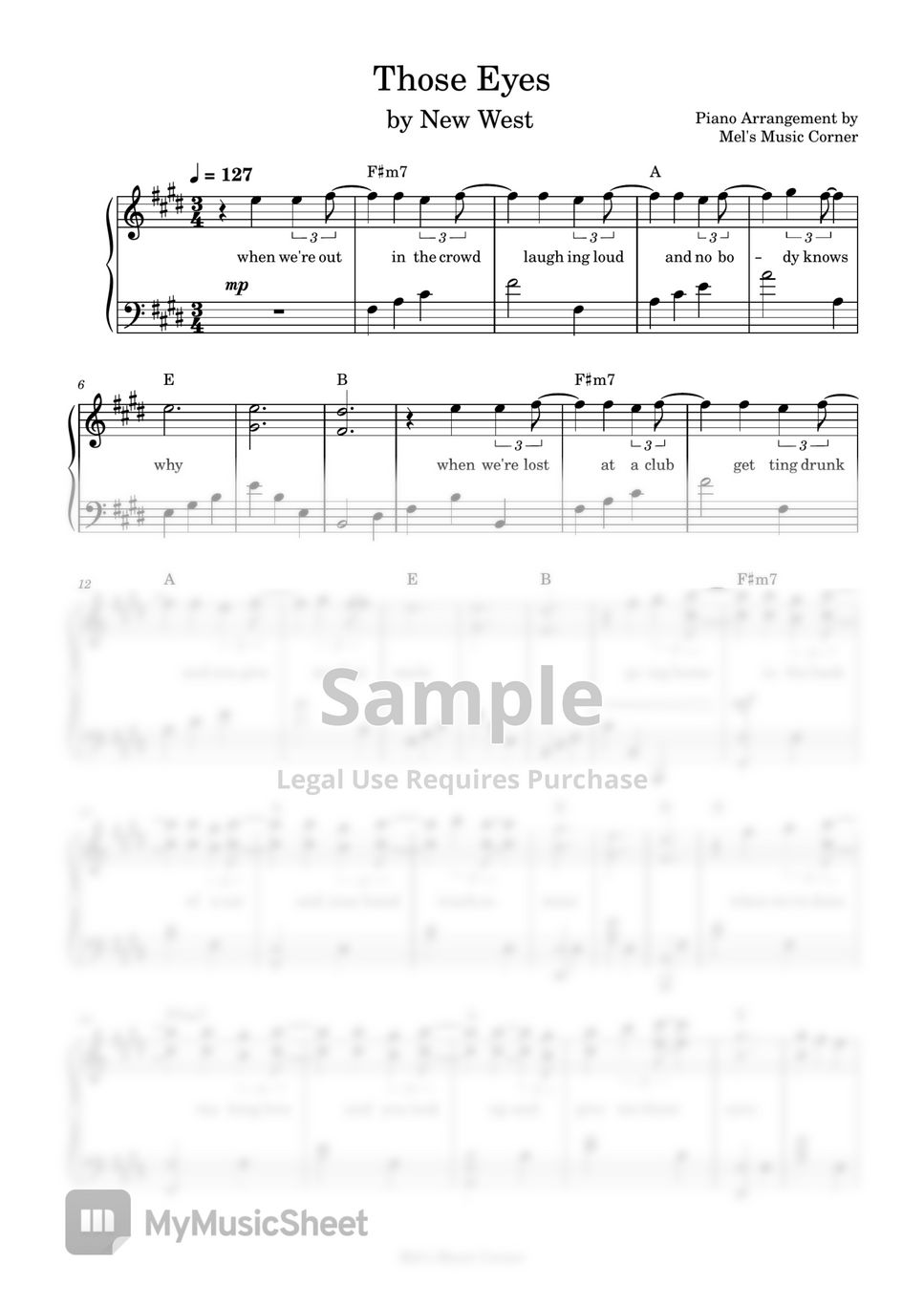 New West Those Eyes (piano sheet music) by Mel's Music Corner Лист