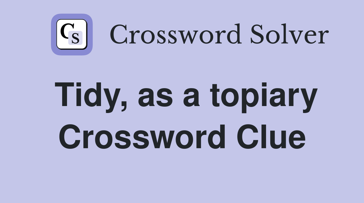 Tidy, as a topiary Crossword Clue Answers Crossword Solver