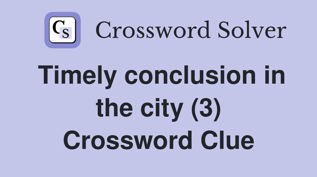 Timely conclusion in the city (3) Crossword Clue Answers Crossword