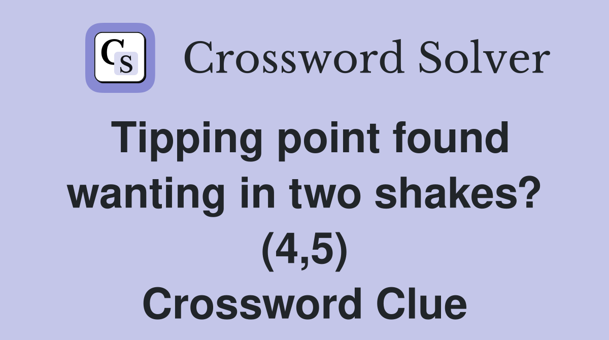 Tipping point found wanting in two shakes? (4,5) Crossword Clue