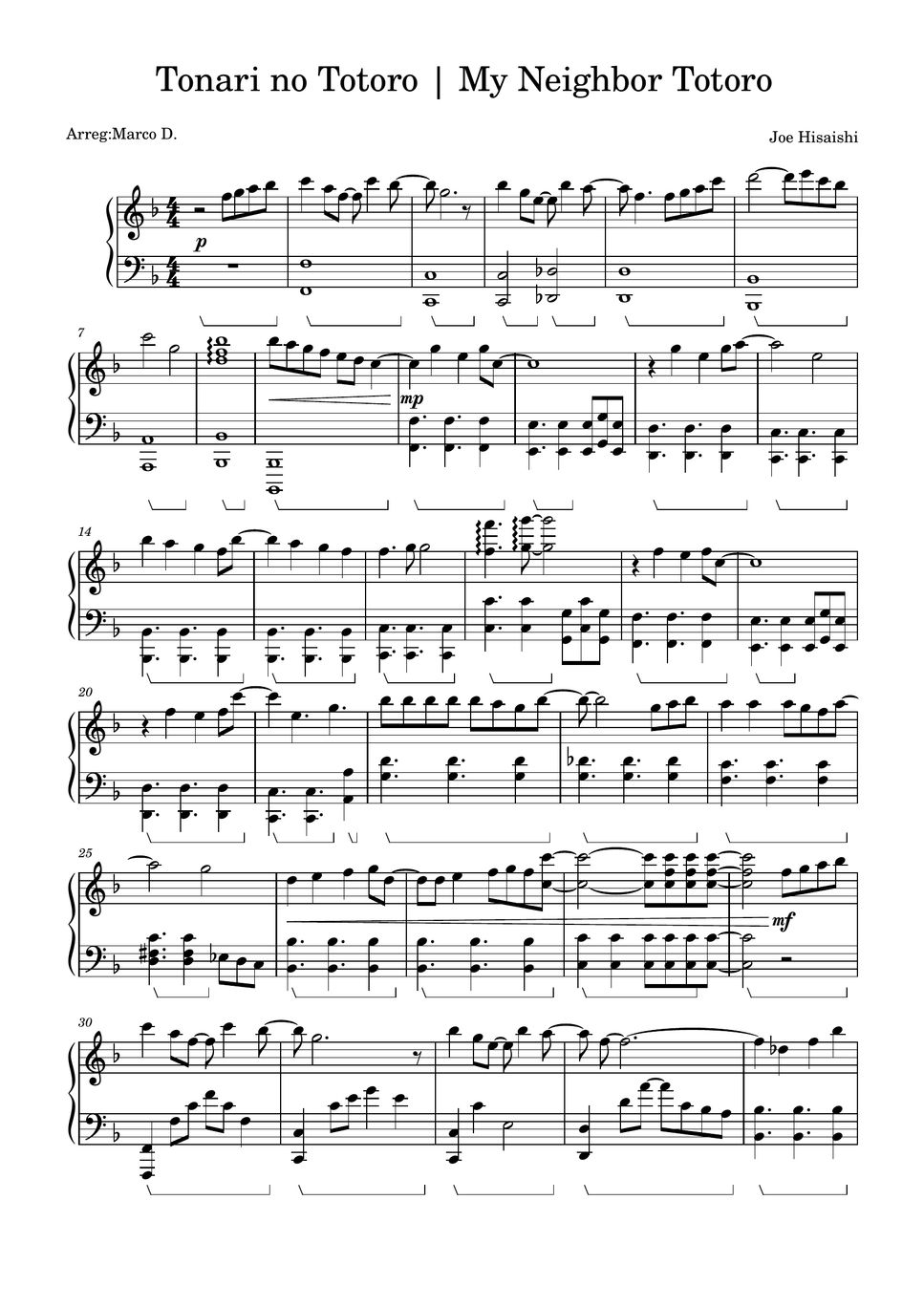 Tonari No Totoro Sheet Music Tonari No Totoro Score •