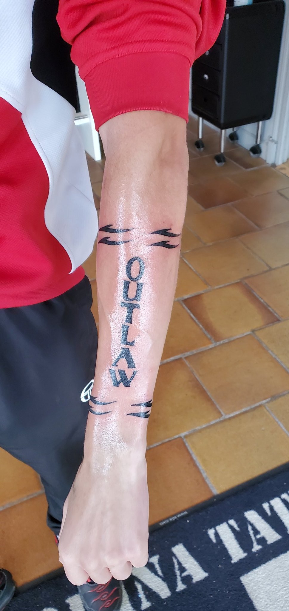 Tupac Outlaw Tattoo - This tattoo represents tupac’s hip hop rappers group which he formed in late 1995 right after he got released from prison. Furthermore, tupac had formed a rap group called “the outlawz” in 1995.