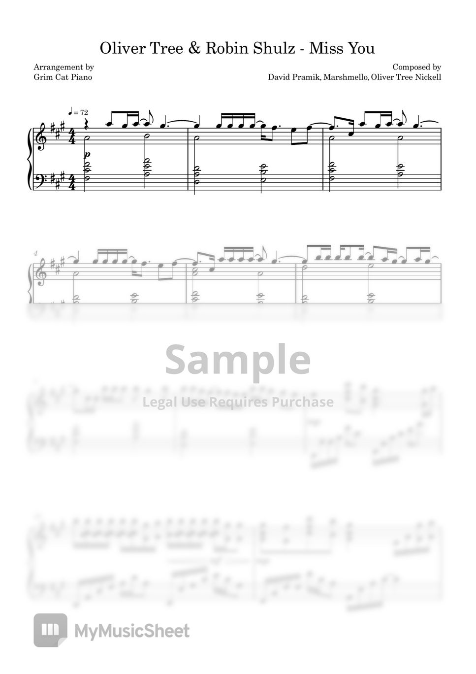 Oliver Tree & Robin Shulz Miss You Sheets by Grim Cat Piano