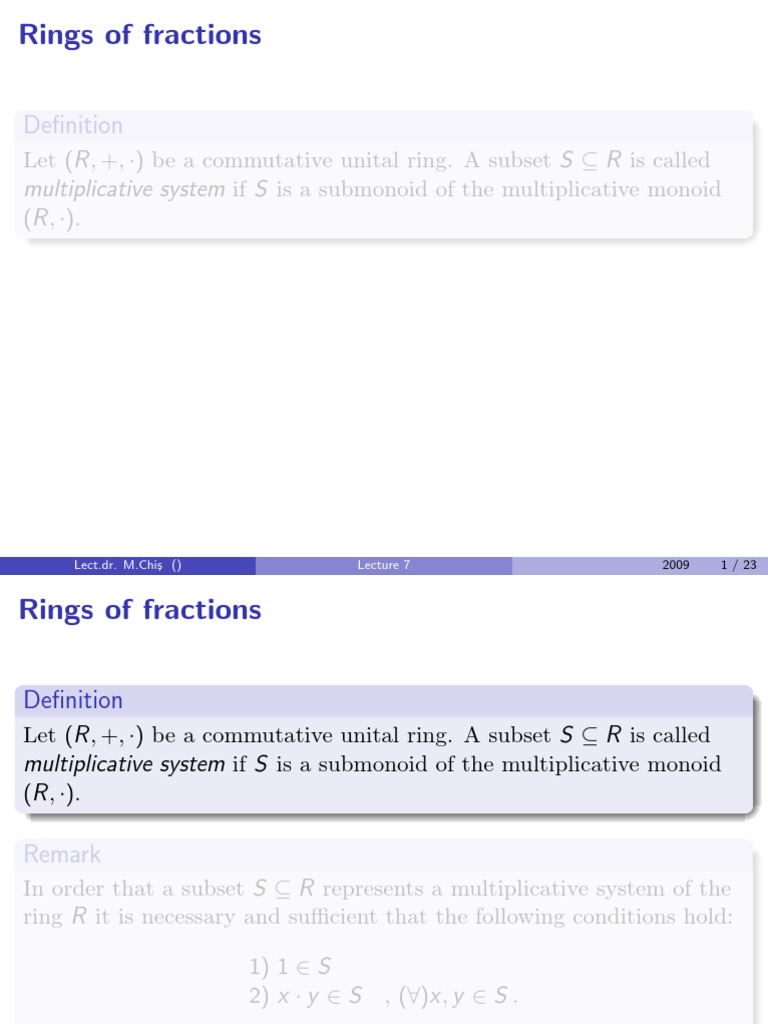 Unital Ring Math - In a unital ring, an idempotent element is either equal to 1 or is a zero divisor: The equivalence sends an augmented commutative ring $r \to \mathbb{z}$ to its kernel in one direction and sends a. An element $1$ such that $1x = x = x1$ for all elements $x$ of the ring. A commutative and unitary ring (r, +, ∘) (r, +, ∘) is a ring with unity which is also commutative. That is, it is a ring such that the. In algebra, a unit or invertible element [a] of a ring is an invertible element for the multiplication of the ring. That is, an element u of a ring r is a. A ring with a multiplicative identity: (i) in a unital ring rthe identity 1 is.