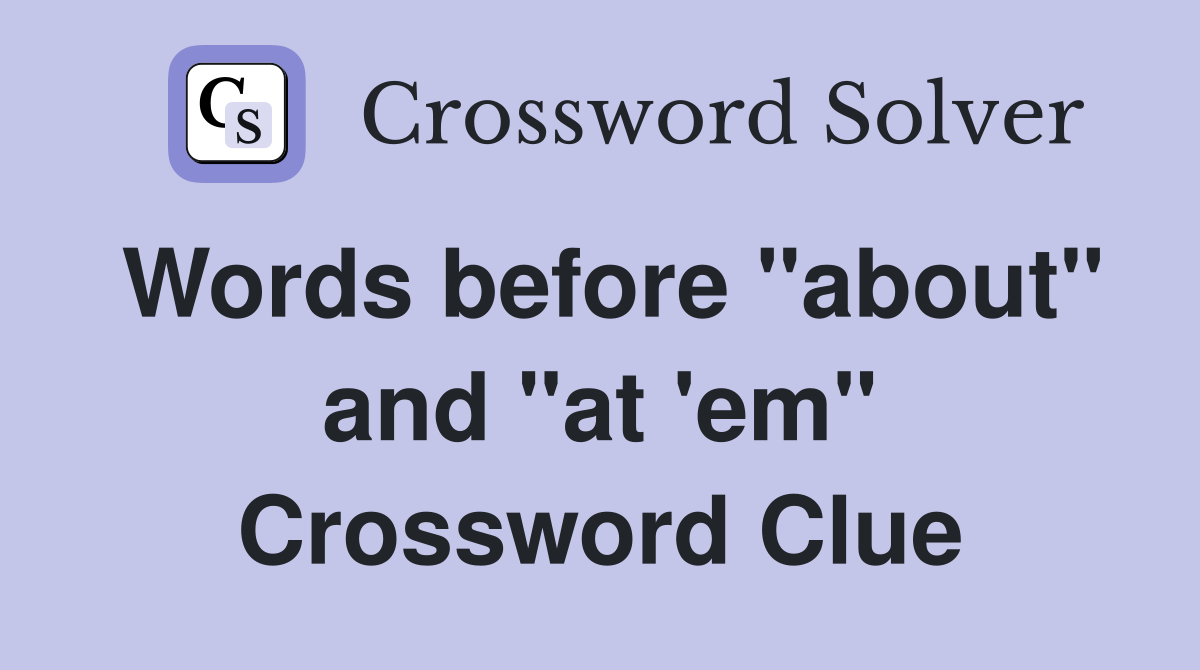 Words before "about" and "at 'em" Crossword Clue Answers Crossword
