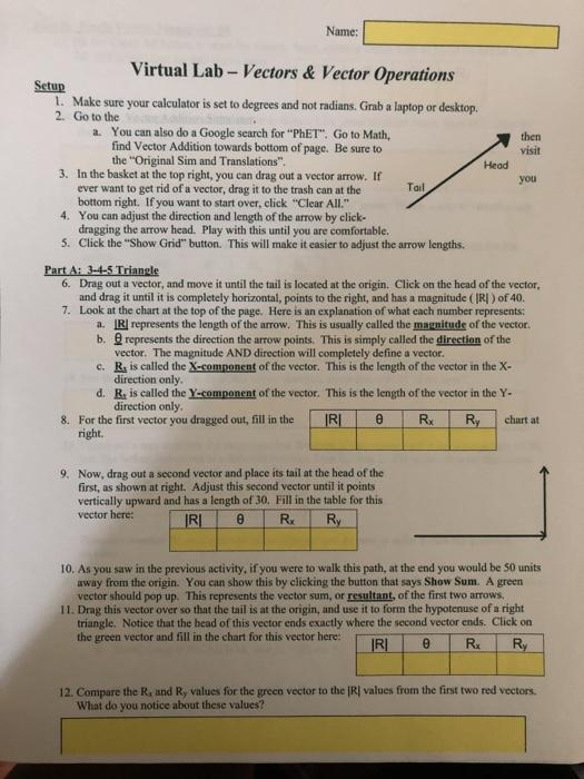 Solved Name Virtual Lab Vectors & Vector Operations Setup