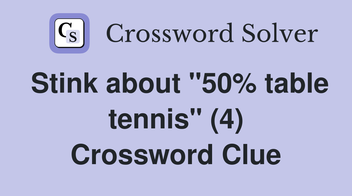 Stink about "50 table tennis" (4) Crossword Clue Answers Crossword