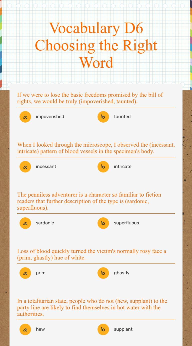 Vocabulary D6 Choosing the Right Word Interactive Worksheet by Logan