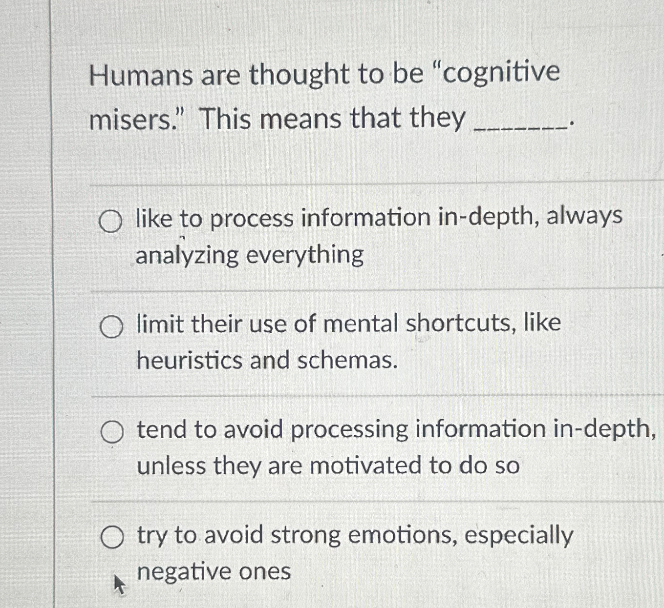 Humans Are Cognitive Misers Because Their Basic Tendency Is To Default To Processing Mechanisms Of Low Computational Expense.