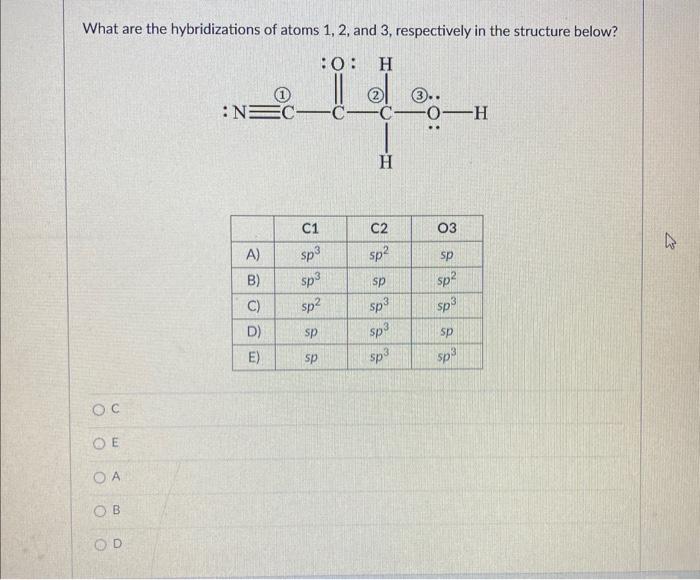 Solved What are the hybridizations of atoms 1,2 , and 3 ,