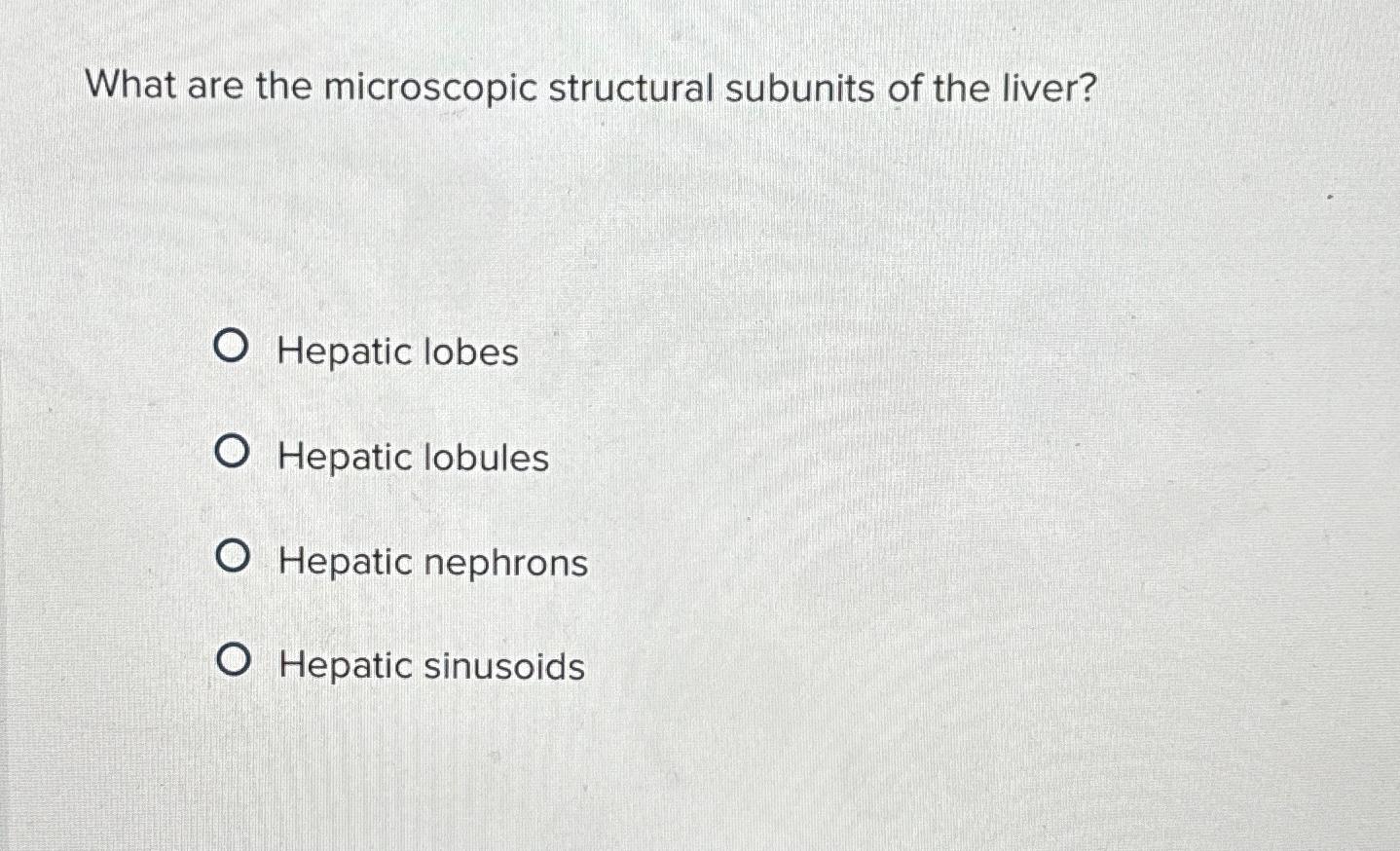 Learn at your own pace. What are the microscopic structural subunits of the liver? Microscopic subunits of the liver, each consisting of a central vein passing down its core, are called hepatic ___. The liver is a unique organ with remarkable capabilities and a vast range of functions. The microscopic anatomy of the liver reveals a uniform structure of clusters.