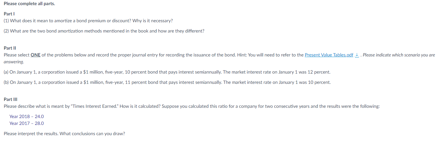 Solved Part I (1) What does it mean to amortize a bond