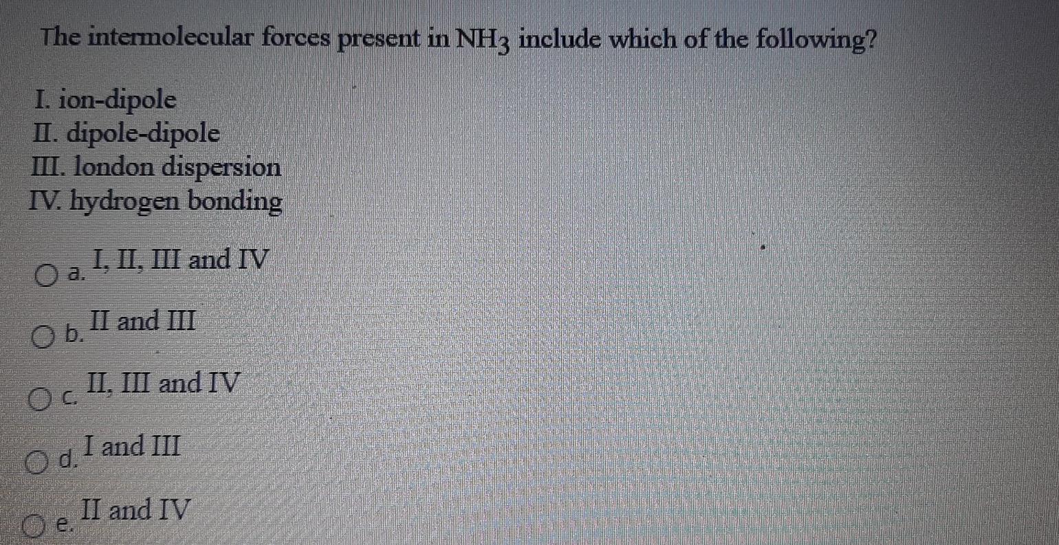 Solved The intermolecular forces present in NH3 include
