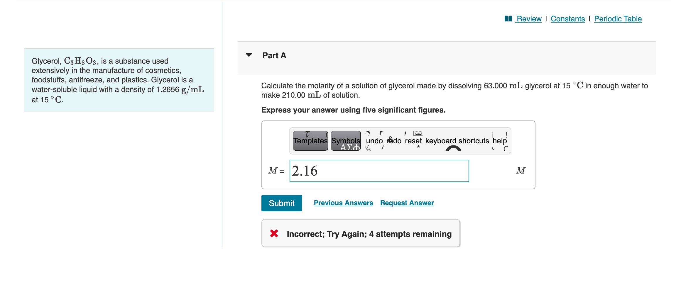 Solved Glycerol, C3H8O3, is a substance used Part A