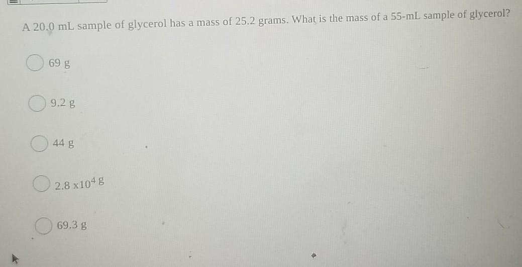 Solved A 20.0 mL sample of glycerol has a mass of 25.2