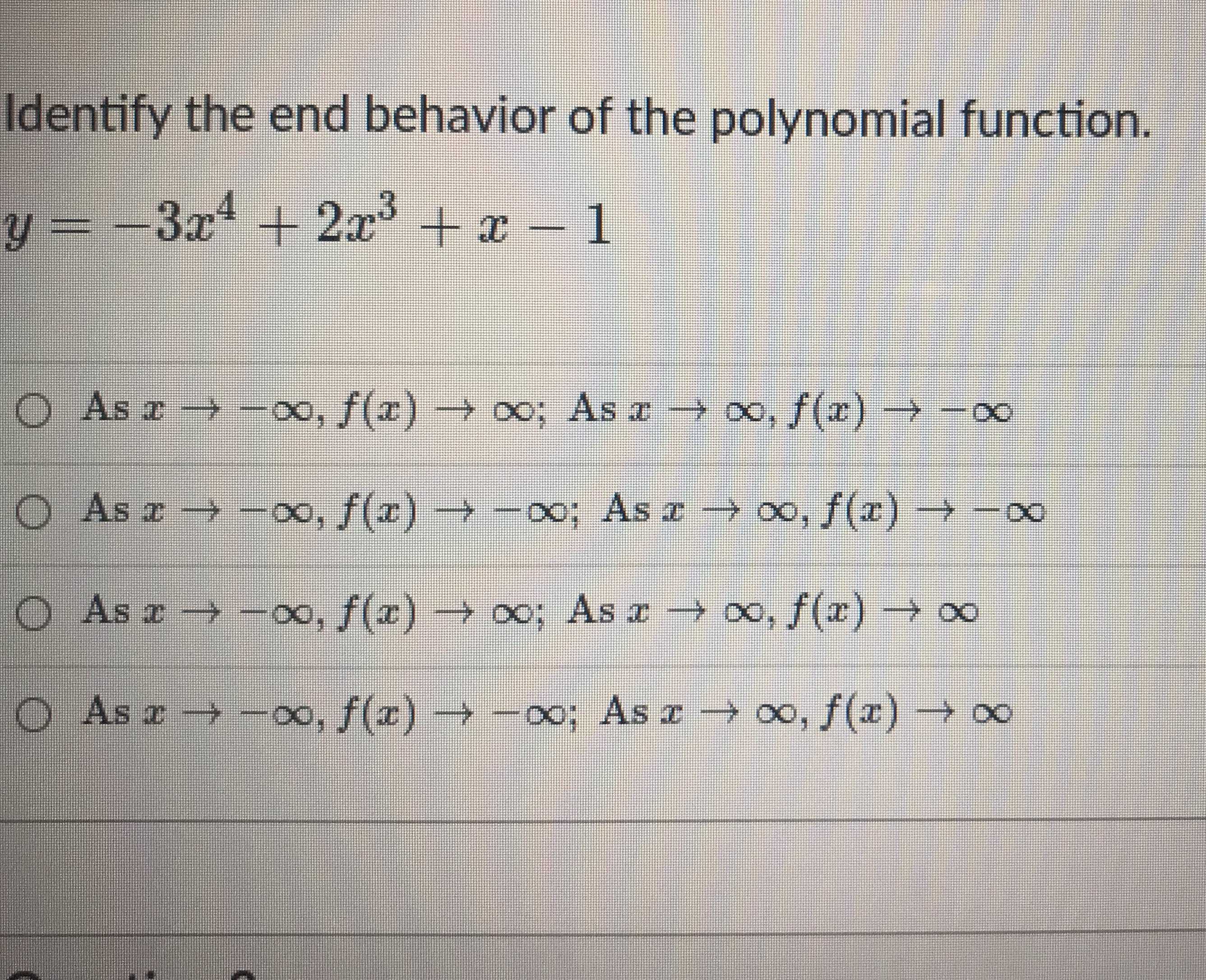 Identify the end behavior of the polynomial functi... CameraMath